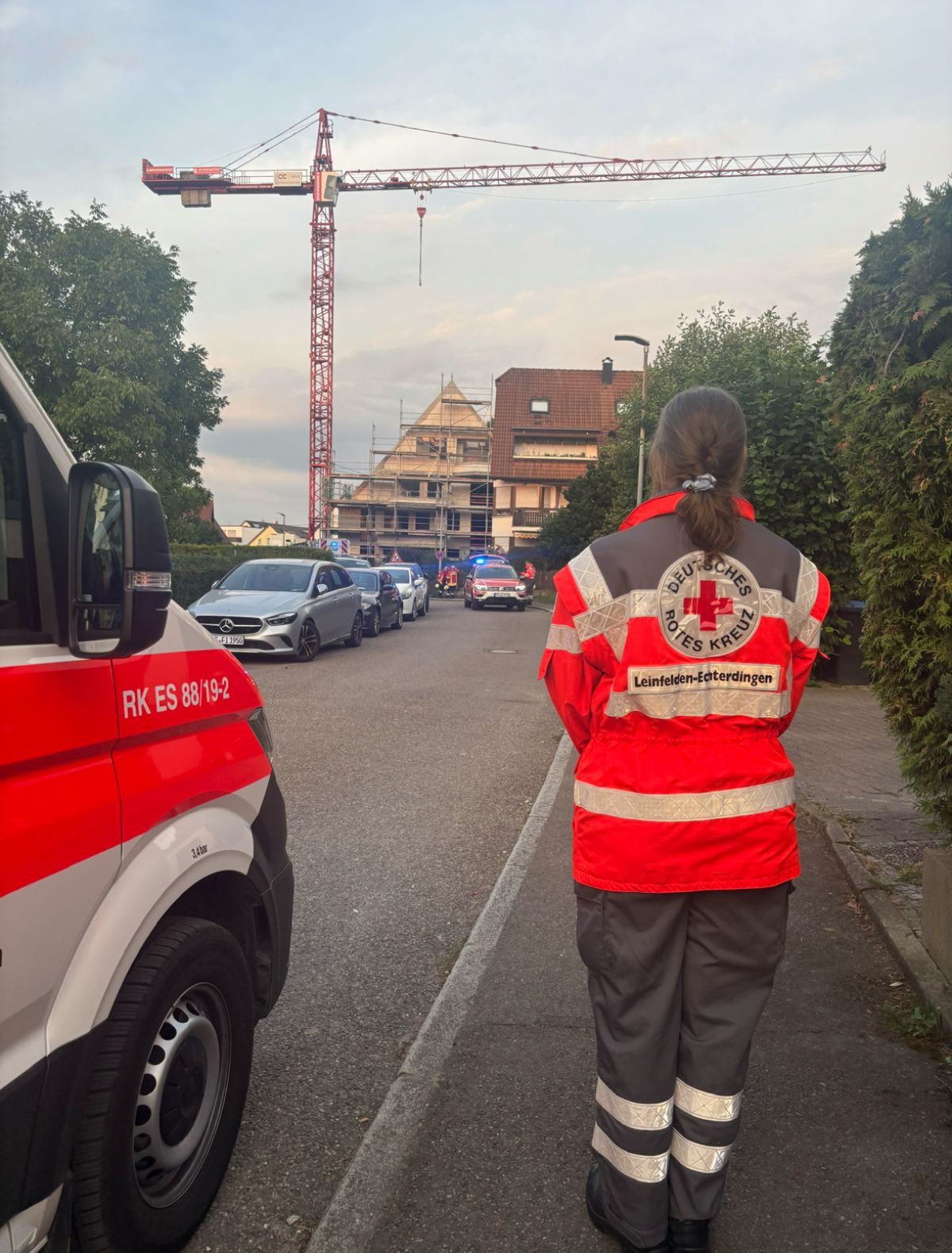 Aufgrund der zunehmenden Gefahr wurde das Alarmstichwort erhöht, woraufhin der Kreisverband Esslingen mit dem B-Dienst zur Unterstützung hinzukam, so dass wir mit insgesamt 3 Fahrzeugen und 5 Kräften vor Ort waren. Während die Feuerwehr mit den Löscharbeiten begann, sicherten wir den Einsatz gemeinsam mit dem Rettungsdienst ab. Glücklicherweise konnte der Brand schnell unter Kontrolle gebracht werden und es gab keine Verletzten.